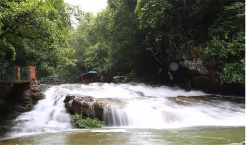 將軍潭瀑布常年傾瀉,沖擊崖下成潭,傳說(shuō)此潭的得名與東漢伏波將軍馬援及欽州民族英雄劉永福息息相關(guān),雨后周圍形成巨大的水霧和呼呼的冷風(fēng)。