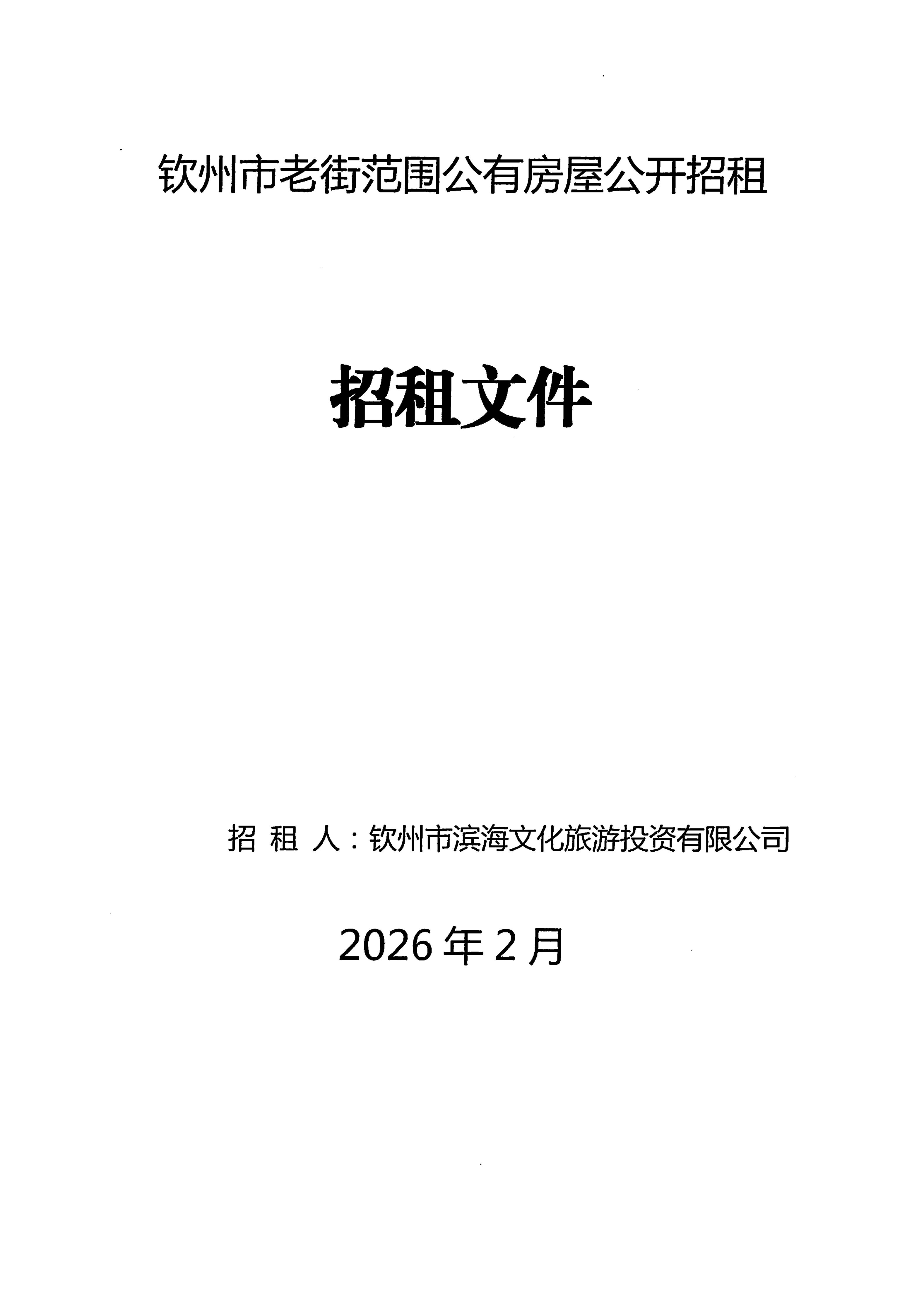 欽州市濱海文化旅游投資有限公司關(guān)于欽州市老街范圍房屋公開招租結(jié)果公示