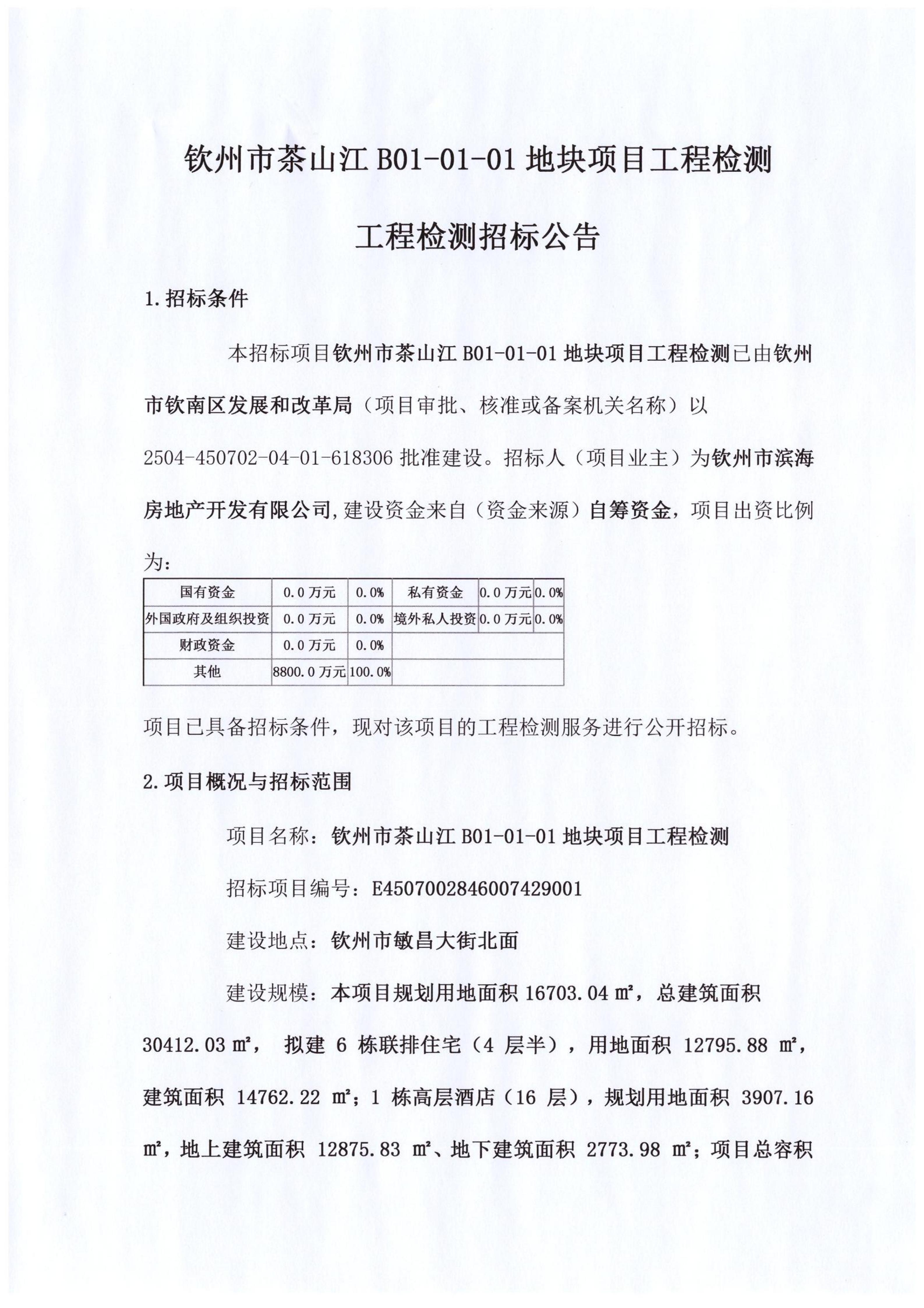 欽州市茶山江B01-01-01地塊項目工程檢測工程檢測招標(biāo)公告