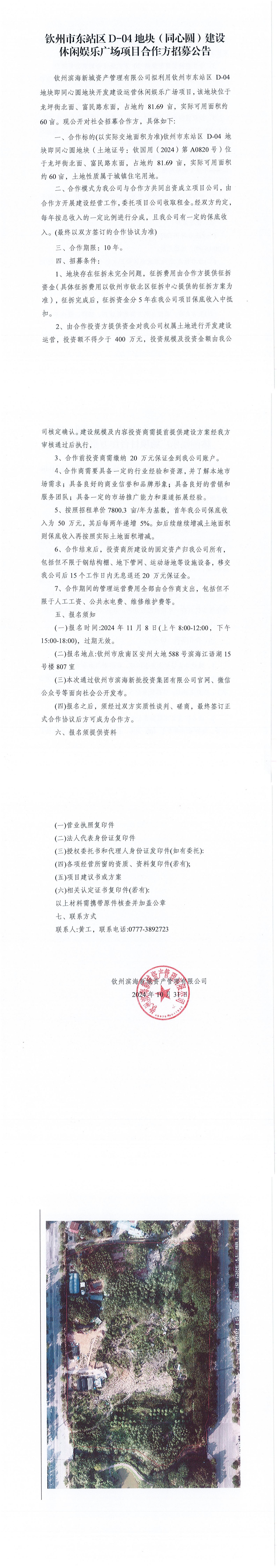 欽州市東站區(qū)D-04地塊(同心圓)建設休閑娛樂廣場項目合作方招募公告