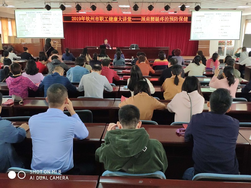 2019年11月14日上午,我集團(tuán)公司組織職工參加市總工會、市健康教育中心舉辦的“頸肩腰腿疼的預(yù)防保健”的職工健康知識公益講座,講座由欽州市中醫(yī)醫(yī)院康復(fù)醫(yī)學(xué)科主任、醫(yī)學(xué)博士、副主任醫(yī)師鐘志年主講。鐘主任通過視頻講解、現(xiàn)場示范,為大家傳授頸肩腰腿疼的預(yù)防保健知識,全體參加人員踴躍參與預(yù)防保健鍛煉動作的互動。