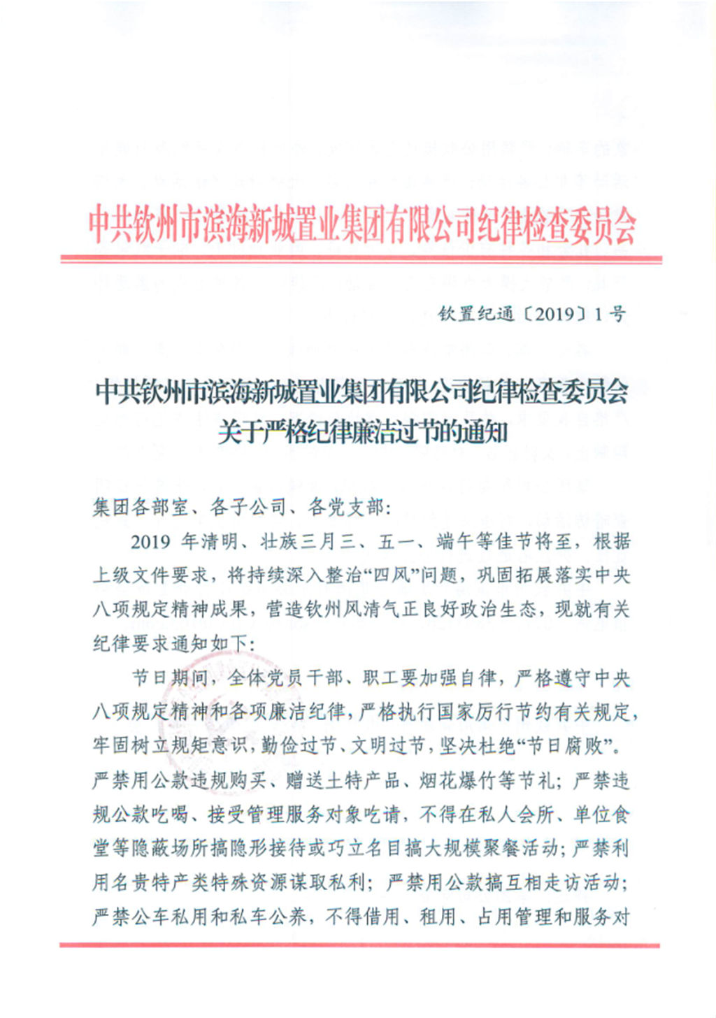 為強化重要節(jié)日節(jié)點紀律要求,嚴防“四風”問題反彈回潮,努力營造崇廉尚儉、風清氣正的節(jié)日氛圍。集團公司紀委印發(fā)了《關(guān)于嚴格紀律廉潔過節(jié)的通知》。
