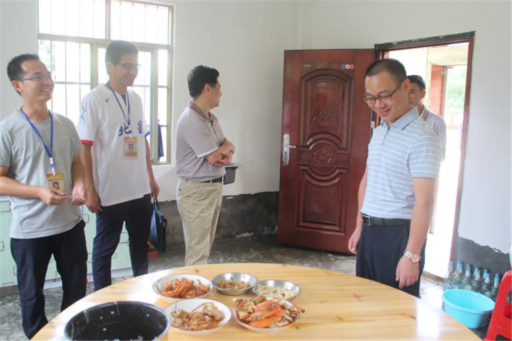 最后,趙文博董事長來到新禾村公共服務(wù)中心看望駐村隊員。由于先前駐村隊員駐村條件艱苦,沒有固定的廚房,每天都要面對“吃飯難”的問題。今年5月份市委組織部下發(fā)《關(guān)于做好扶貧攻堅(鄉(xiāng)村振興)工作隊員駐村安排工作的通知》,要求駐村隊員吃住在村、全脫產(chǎn)工作在村作為一條鐵的紀(jì)律。為此,新禾村的三個幫扶單位積極研究對策并推動落實,集團(tuán)公司大力予以資金支持用于新禾村公共服務(wù)中心廚房的建設(shè)。歷經(jīng)一個多月的建設(shè),村委廚房已建成并投入使用。趙文博董事長在第一書記的引導(dǎo)下來到廚房參觀,看到廚具、餐具、餐桌、凳子一應(yīng)俱全,駐村隊員們終于解決了吃飯難問題時,趙董事長松了一口氣,他表示廚房的建成,不僅解決了駐村隊員做飯難、吃飯難的問題,同時也為駐村隊員解決了后顧之憂,讓工作隊員能安心駐村,爭取提前完成脫貧攻堅任務(wù)打下堅實的物質(zhì)基礎(chǔ)。