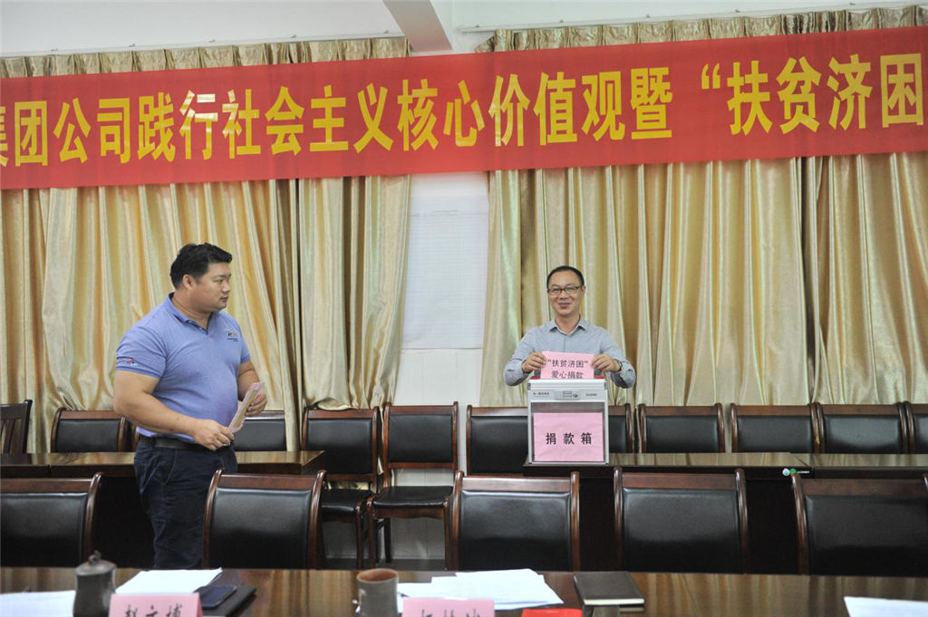 圖為集團(tuán)公司組織召開(kāi)扶貧政策知識(shí)學(xué)習(xí)專(zhuān)題會(huì) 2018年10月17日是我國(guó)第5個(gè)扶貧日,也是第26個(gè)國(guó)際消除貧困日。為積極響應(yīng)扶貧號(hào)召,集團(tuán)公司圍繞欽州市2018年扶貧日活動(dòng)主題及活動(dòng)方案,開(kāi)展了集團(tuán)公司社會(huì)主義核心價(jià)值觀(guān)暨“扶貧濟(jì)困”系列活動(dòng)。 10月19日上午,集團(tuán)公司組織幫扶干部和各部室負(fù)責(zé)人召開(kāi)了扶貧政策知識(shí)學(xué)習(xí)專(zhuān)題會(huì),會(huì)上共同學(xué)習(xí)了《自治區(qū)扶貧開(kāi)發(fā)領(lǐng)導(dǎo)小組關(guān)于調(diào)整我區(qū)扶貧對(duì)象脫貧摘帽標(biāo)準(zhǔn)的通知》(桂扶領(lǐng)發(fā)〔2018〕13號(hào))、《2018年廣西雨露計(jì)劃扶貧培訓(xùn)政策宣傳單》、《關(guān)于轉(zhuǎn)發(fā)〈靈山縣貧困戶(hù)以獎(jiǎng)代補(bǔ)特色產(chǎn)業(yè)扶貧實(shí)施辦法〉的通知》(靈開(kāi)辦發(fā)〔2018〕9號(hào))等文件,讓每個(gè)幫扶干部熟練掌握相關(guān)扶貧政策,促進(jìn)幫扶干部政策理解和知識(shí)吸收,增強(qiáng)運(yùn)用政策和轉(zhuǎn)化政策的能力,最大限度推動(dòng)扶貧政策落地見(jiàn)效。 會(huì)后,立即開(kāi)展了“扶貧濟(jì)困,扶弱助貧”捐贈(zèng)活動(dòng),集團(tuán)公司發(fā)動(dòng)黨員、干部、職工自愿參與扶貧捐贈(zèng)活動(dòng),呼吁全體職工參與到“全國(guó)扶貧日”這項(xiàng)意義深遠(yuǎn)的活動(dòng)中來(lái)?;顒?dòng)中,集團(tuán)公司主要領(lǐng)導(dǎo)帶頭捐款,干部職工都積極響應(yīng),當(dāng)天籌集到的愛(ài)心捐款共計(jì)¥8040.00元(人民幣捌仟零肆拾元整),所籌集的捐款將用于公司定點(diǎn)幫扶貧困村、貧困戶(hù)的生產(chǎn)生活條件改善、產(chǎn)業(yè)發(fā)展或發(fā)展村集體經(jīng)濟(jì)。 圖為集團(tuán)公司董事長(zhǎng)趙文博帶頭捐款 圖為集團(tuán)公司黨員干部積極響應(yīng)捐款號(hào)召
