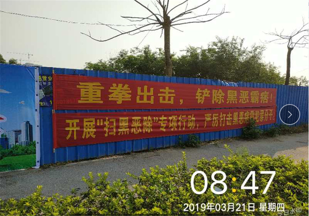 為抓好此項工作,通知各項目代表深入現(xiàn)場,并召集施工單位召開了專題動員會,并制定了具體的工作措施,如:張掛橫幅、微信群、qq群等渠道宣傳掃黑除惡行動。做到每個項目現(xiàn)場都在明顯位置張掛掃黑除惡標(biāo)語的橫幅。