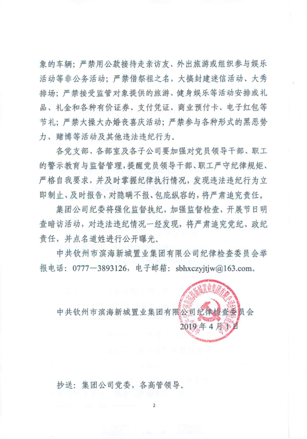 集團(tuán)公司紀(jì)委印發(fā)了《關(guān)于嚴(yán)格紀(jì)律廉潔過節(jié)的通知》
