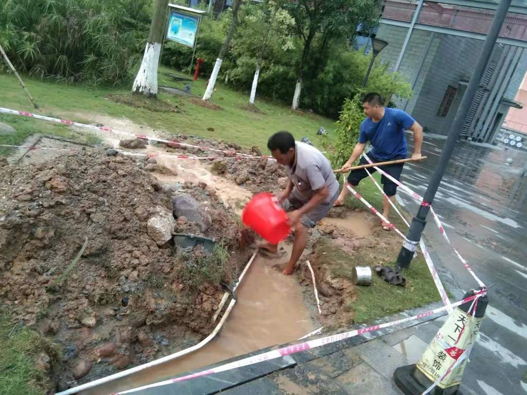 8月29日傍晚,蘭亭街一處深埋的水管爆裂,裂口較大,出水很急。我集團(tuán)公司子公司資產(chǎn)公司接到電話后,立即安排人員到現(xiàn)場(chǎng)深入了解情況,聯(lián)系水務(wù)公司專(zhuān)業(yè)維修隊(duì)進(jìn)行搶修,并及時(shí)通知蘭亭街商家做好儲(chǔ)水應(yīng)急準(zhǔn)備。