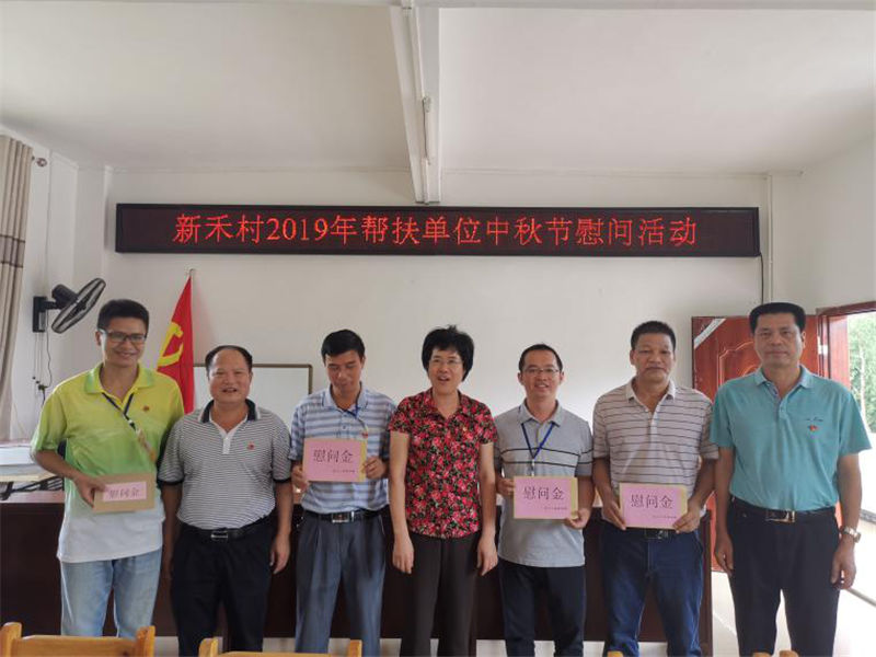 月到中秋分外明,人到佳節(jié)別樣親,在國慶、中秋佳節(jié)來臨之際,為讓貧困戶過上一個溫馨、祥和的中秋佳節(jié),9月11日上午,集團公司副總經(jīng)理楊新棟、余業(yè)勝率部分黨員干部來到新禾村,對村干部、駐村工作隊員、貧困戶開展中秋節(jié)慰問活動,讓幫扶對象感受到幫扶干部的關(guān)愛和祝福。