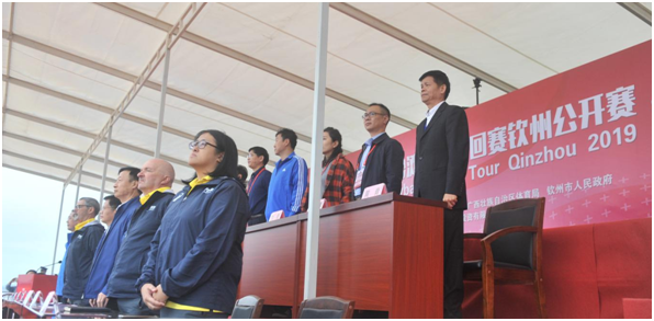 10月31日,2019年世界沙灘排球賽—欽州公開(kāi)賽開(kāi)幕式在比賽現(xiàn)場(chǎng)主賽場(chǎng)舉行,國(guó)際排聯(lián)技術(shù)代表布萊爾•哈里森、國(guó)家體育總局排球運(yùn)動(dòng)管理中心黨委書記顧國(guó)平講話,譚丕創(chuàng)市長(zhǎng)致辭并宣布2019年世界沙灘排球巡回賽開(kāi)幕。