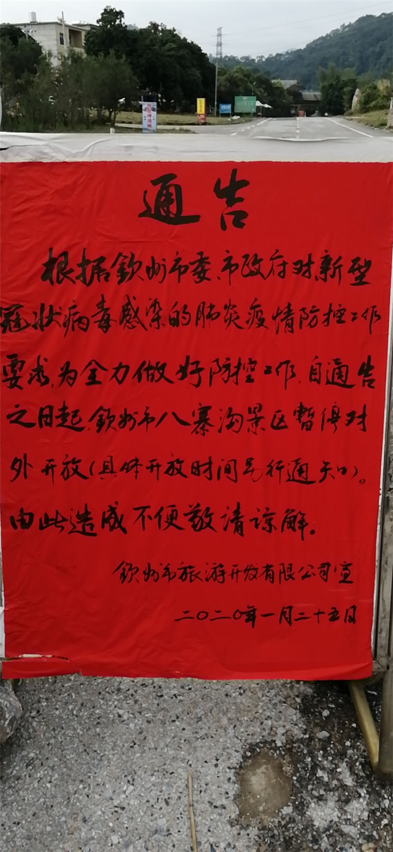 為進一步加強八寨溝景區(qū)新型冠狀病毒感染的肺炎疫情防控工作,有效防止疫情經(jīng)旅游途徑傳播,切實保障游客及公司員工身體健康和生命安全。根據(jù)欽州市委專題擴大會議對新型冠狀病毒感染肺炎疫情防控工作的部署,欽州市文化廣電體育和旅游局《關(guān)于取消欽州市 2020 年春節(jié)期間文化體育旅游活動和暫停相關(guān)文化體育旅游業(yè)務(wù)的通知》,以及欽州市文化廣電體育和旅游局《關(guān)于全市A級景區(qū)、鄉(xiāng)村旅游區(qū)、農(nóng)家樂暫停對外開放的通知》,我公司將現(xiàn)階段防控疫情的工作情況報告如下: