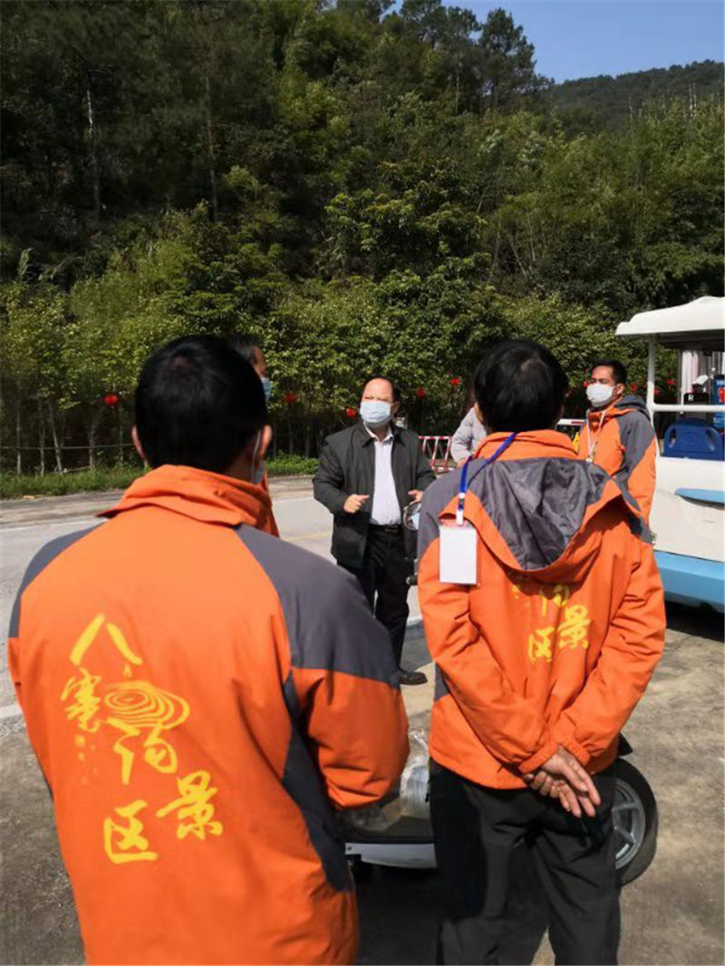 二、為進一步傳達市委、市人民政府有關(guān)疫情防控工作的相關(guān)文件精神,公司領(lǐng)導(dǎo)前往景區(qū)現(xiàn)場指導(dǎo)疫情防控工作,特別強調(diào)當前防控工作形式嚴峻,景區(qū)員工要增強緊迫感和責任感,切實加強景區(qū)人員出入管理及消毒清潔,保障游客及公司員工的身體健康和生命安全;