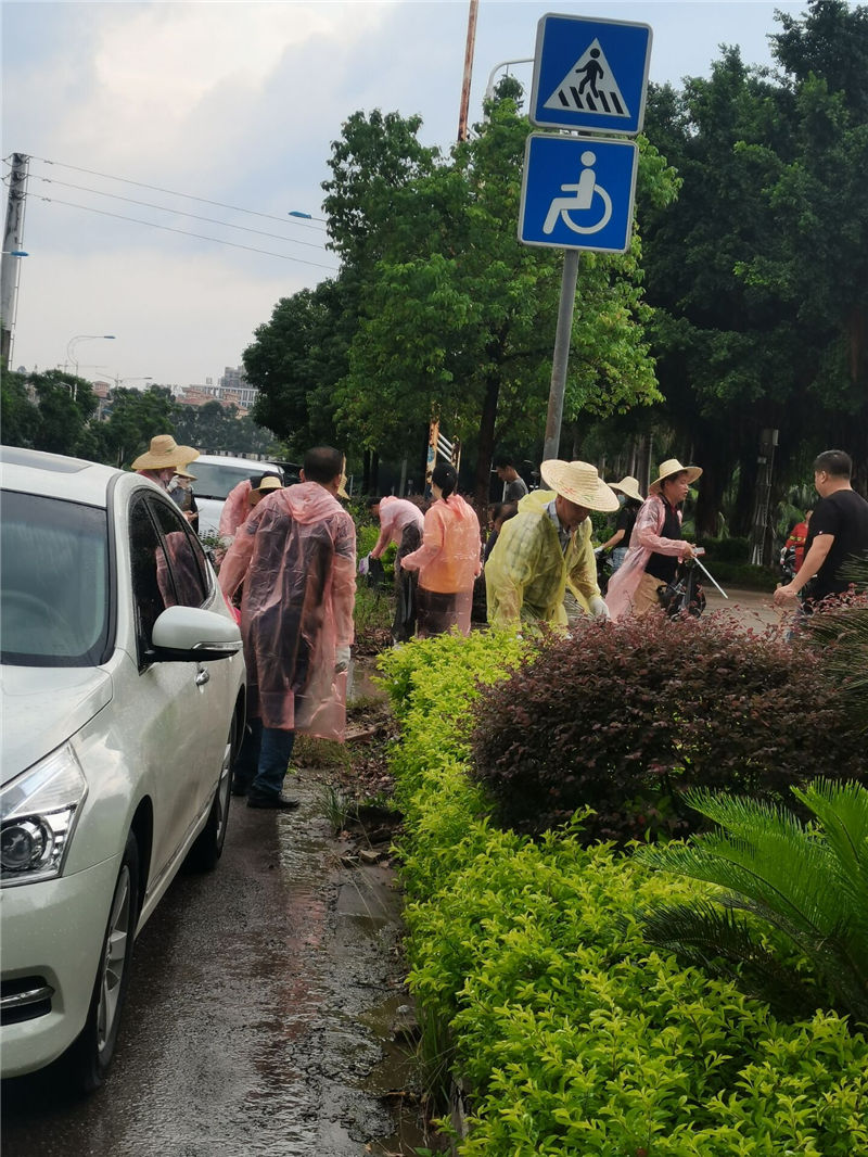 活動(dòng)當(dāng)天,煙雨朦朧。志愿者們有的拿著鏟子,有的拿著掃把,有的拿著垃圾簍,冒雨干起活來(lái)。