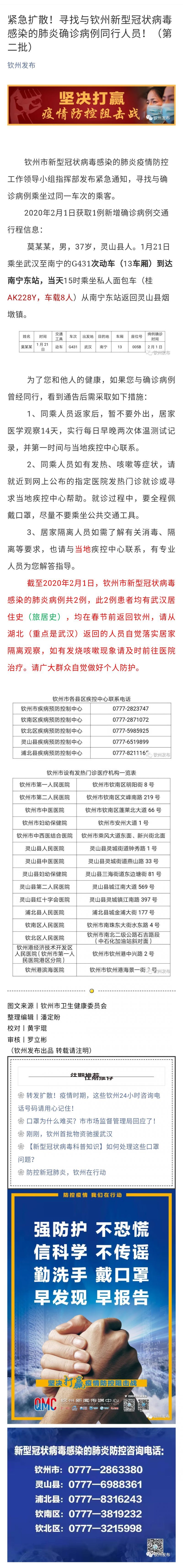 緊急擴(kuò)散!尋找與欽州新型冠狀病毒感染的肺炎確診病例同行人員?。ǖ诙?/a>