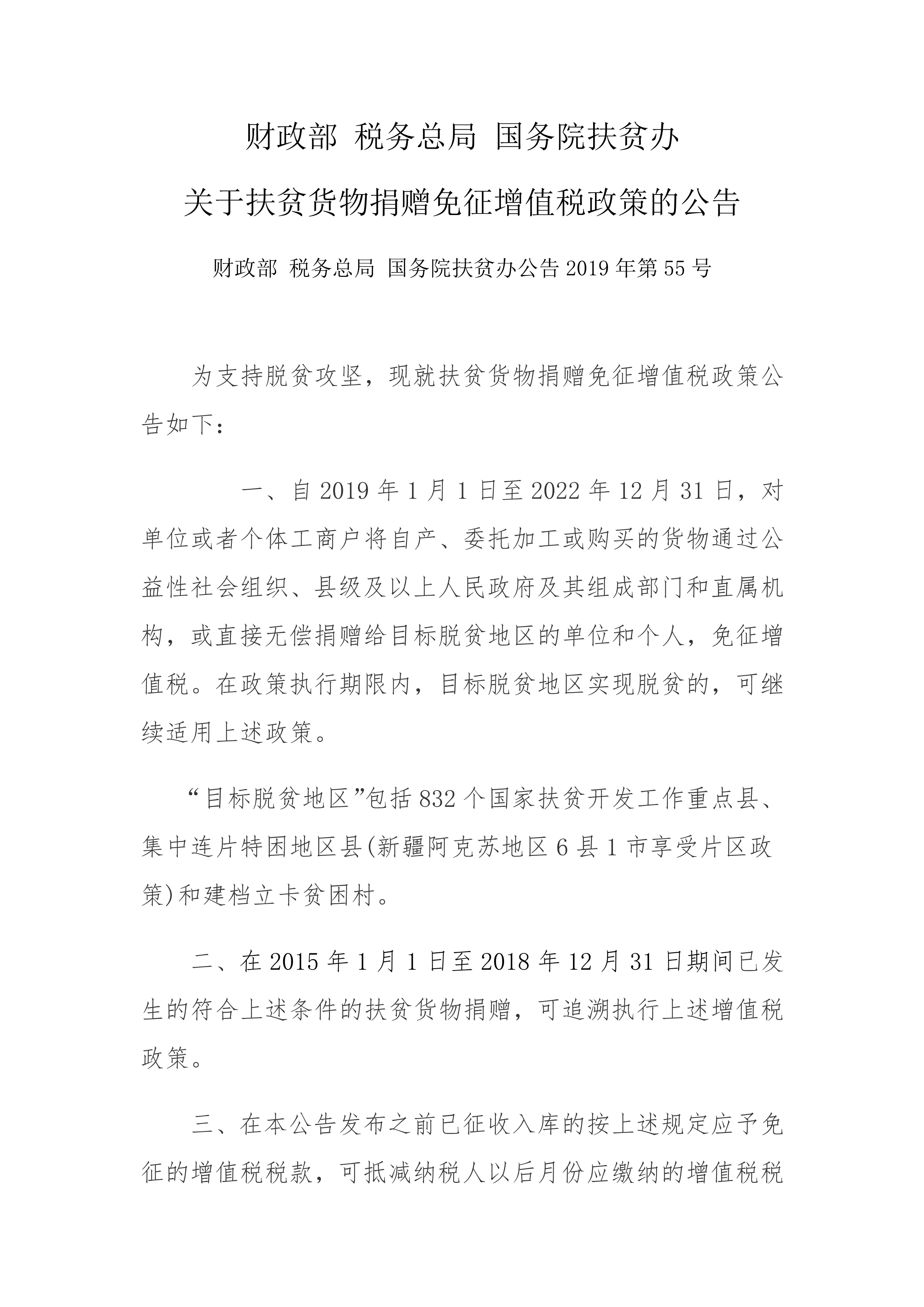 關于扶貧貨物捐贈免征增值稅政策的公告
