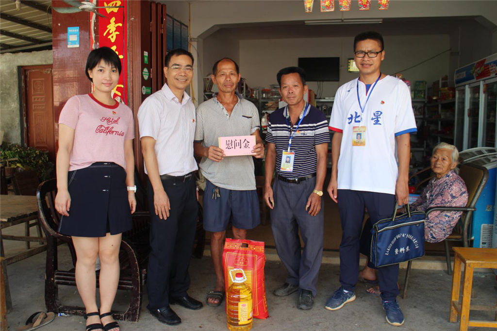 為紀念建黨97周年,弘揚黨的光榮傳統(tǒng)和優(yōu)良作風,充分體現(xiàn)黨組織對基層黨員的關懷和愛護,6月28日上午,集團公司黨委副書記覃世金率部分黨員干部來到幫扶村—靈山縣伯勞鎮(zhèn)新禾村,開展集團公司“七一”慰問生活困難黨員、老黨員和村干部活動,為他們送去慰問金和慰問品,同時也對集團公司幫扶的貧困戶進行了入戶走訪。
