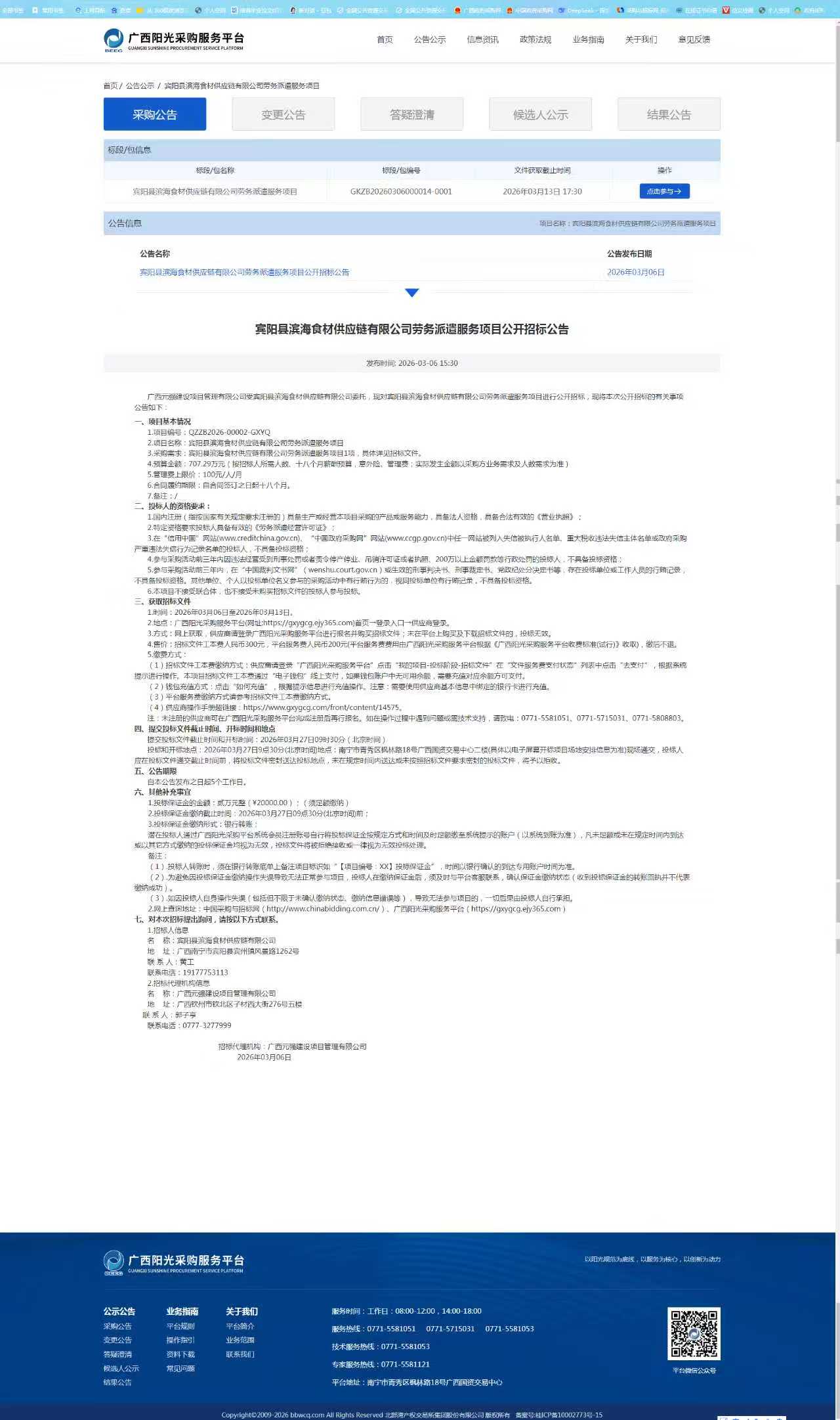 廣西元強建設項目管理有限公司關于賓陽縣濱海食材供應鏈有限公司勞務派遣服務項目的更正公告(二)