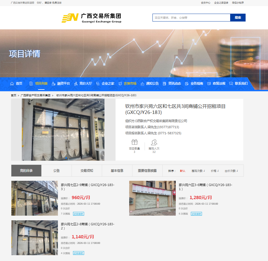 欽州市家興苑六區(qū)和七區(qū)共3間商鋪公開招租項目(GXCQJY26-183)