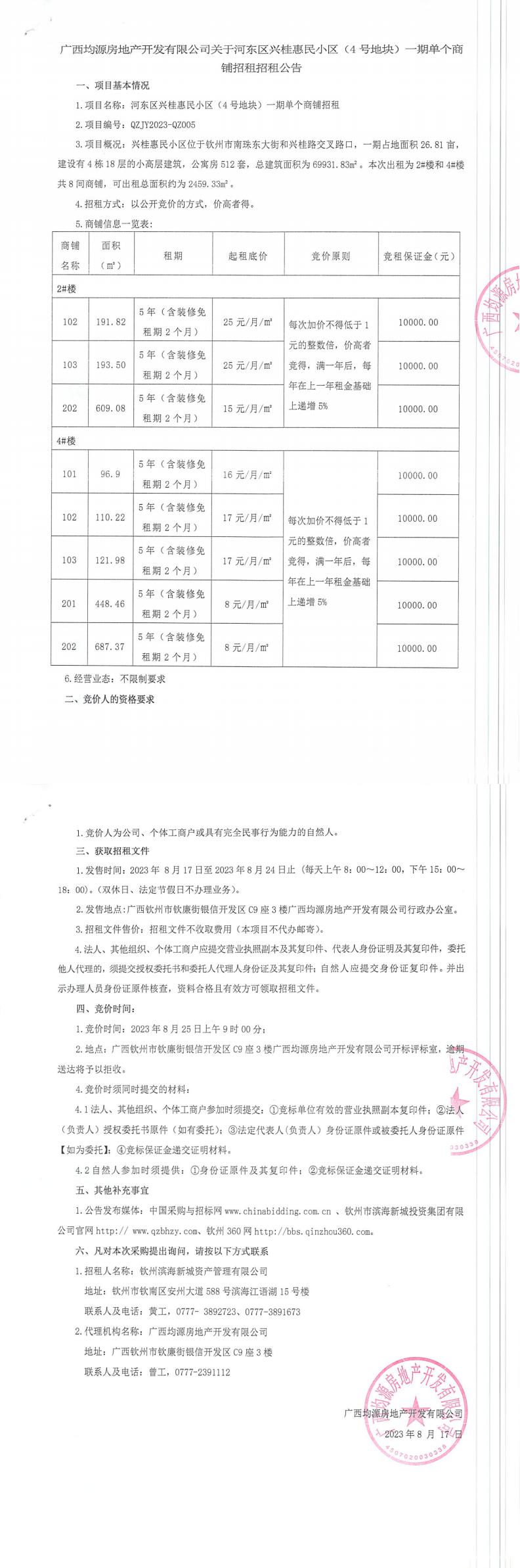 興桂惠民小區(qū)(4號(hào)地塊)一期單個(gè)商鋪招租招租公告