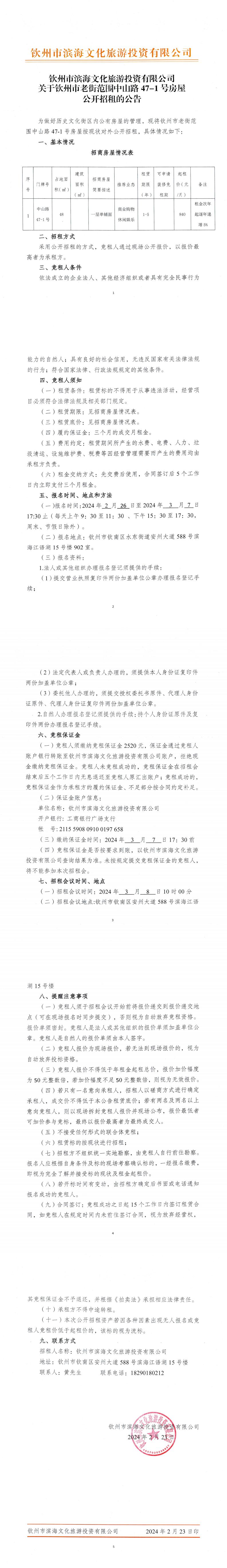 關(guān)于欽州市老街范圍中山路47-1號(hào)房屋公開招租的公告
