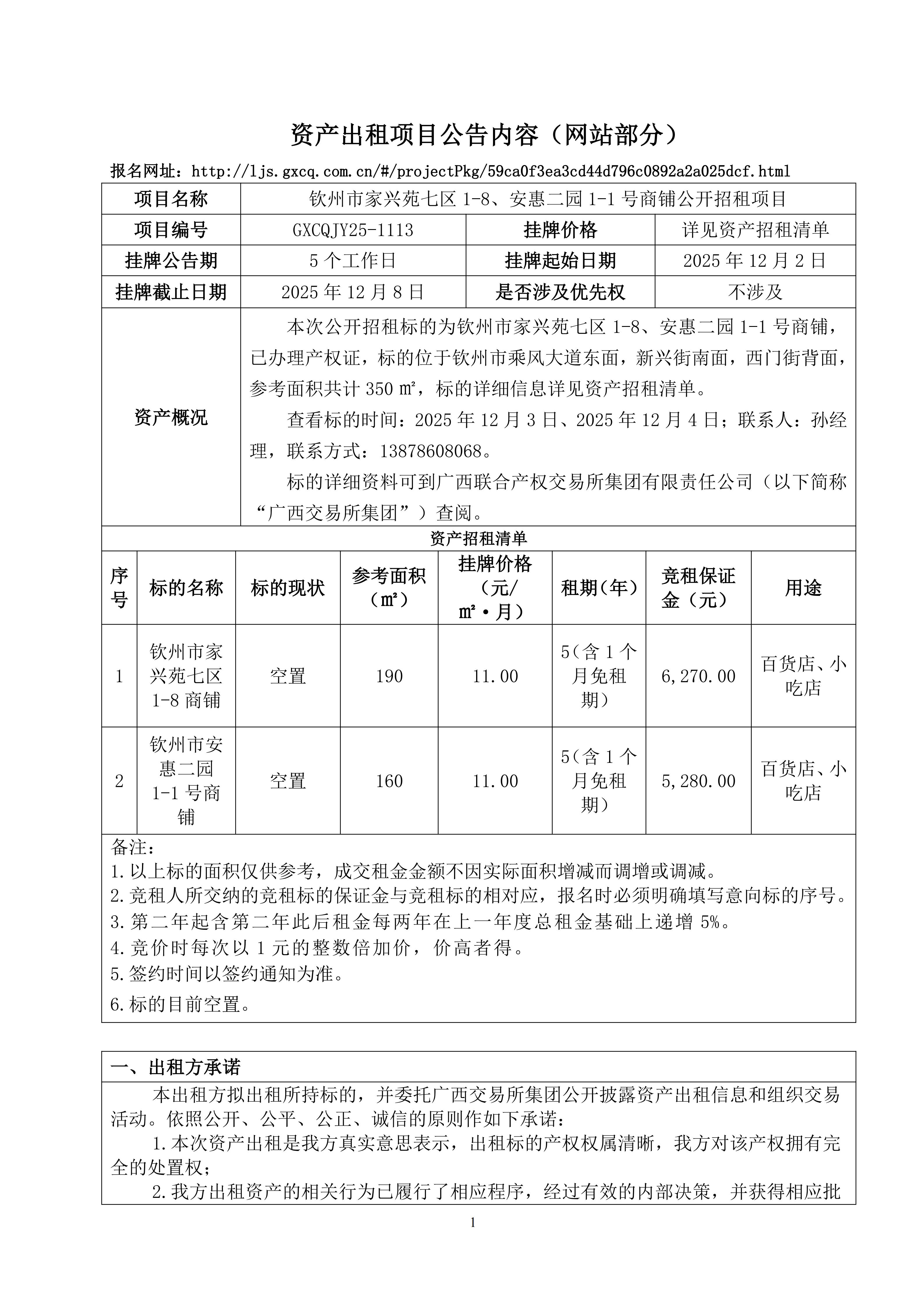 欽州市家興苑七區(qū)1-8、安惠二園1-1號(hào)商鋪公開(kāi)招租項(xiàng)目