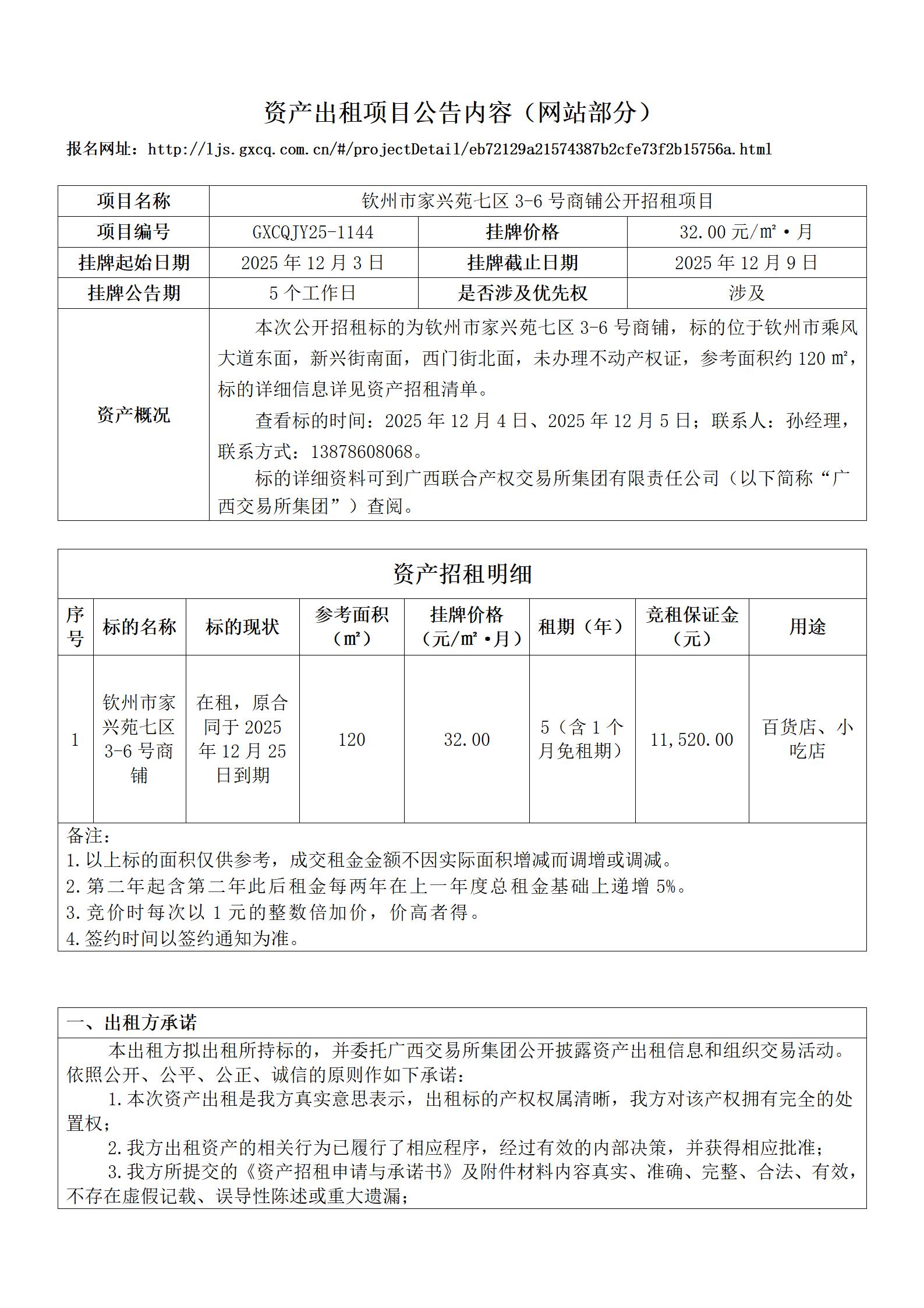 欽州市家興苑七區(qū)3-6號(hào)商鋪公開(kāi)招租項(xiàng)目