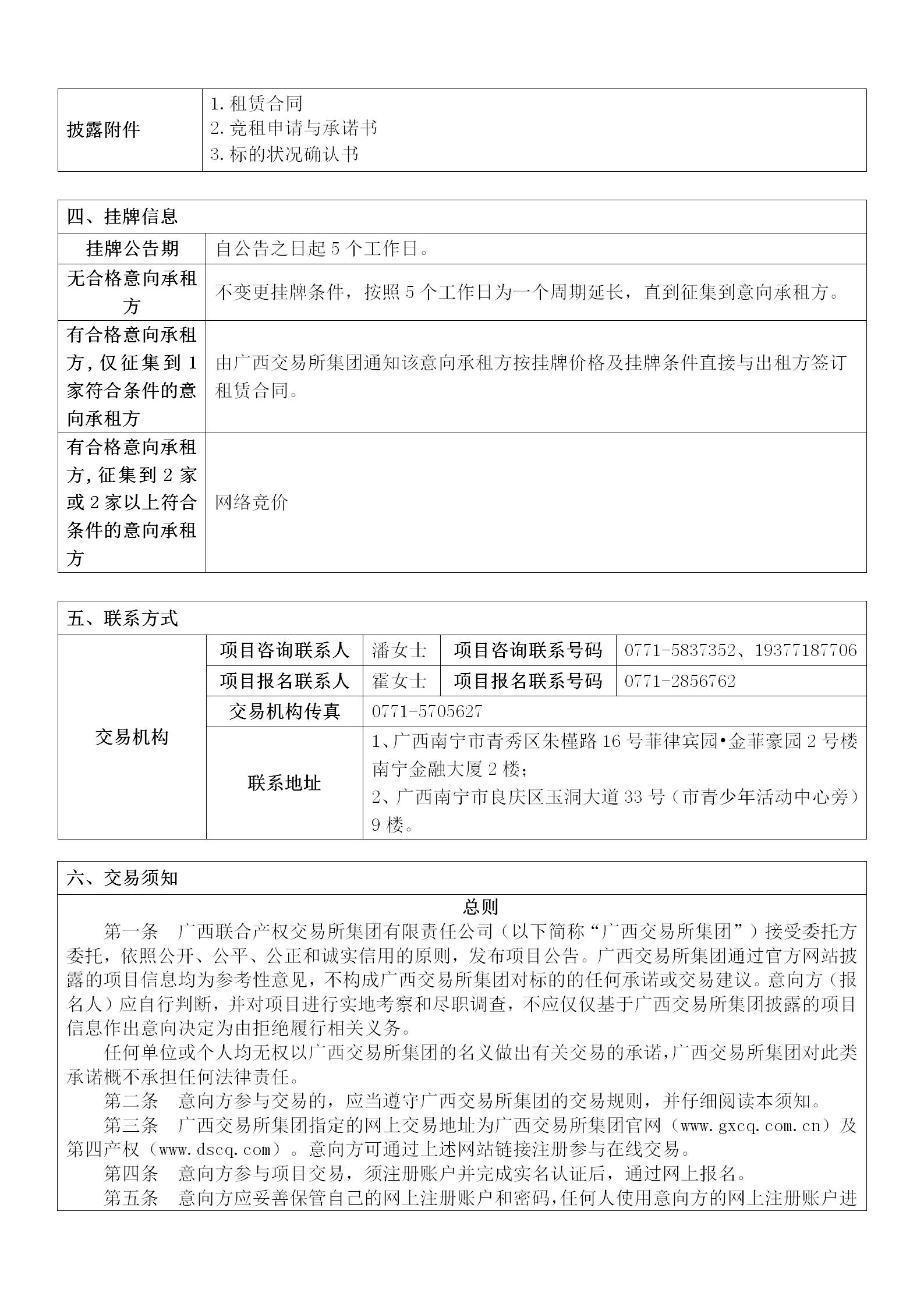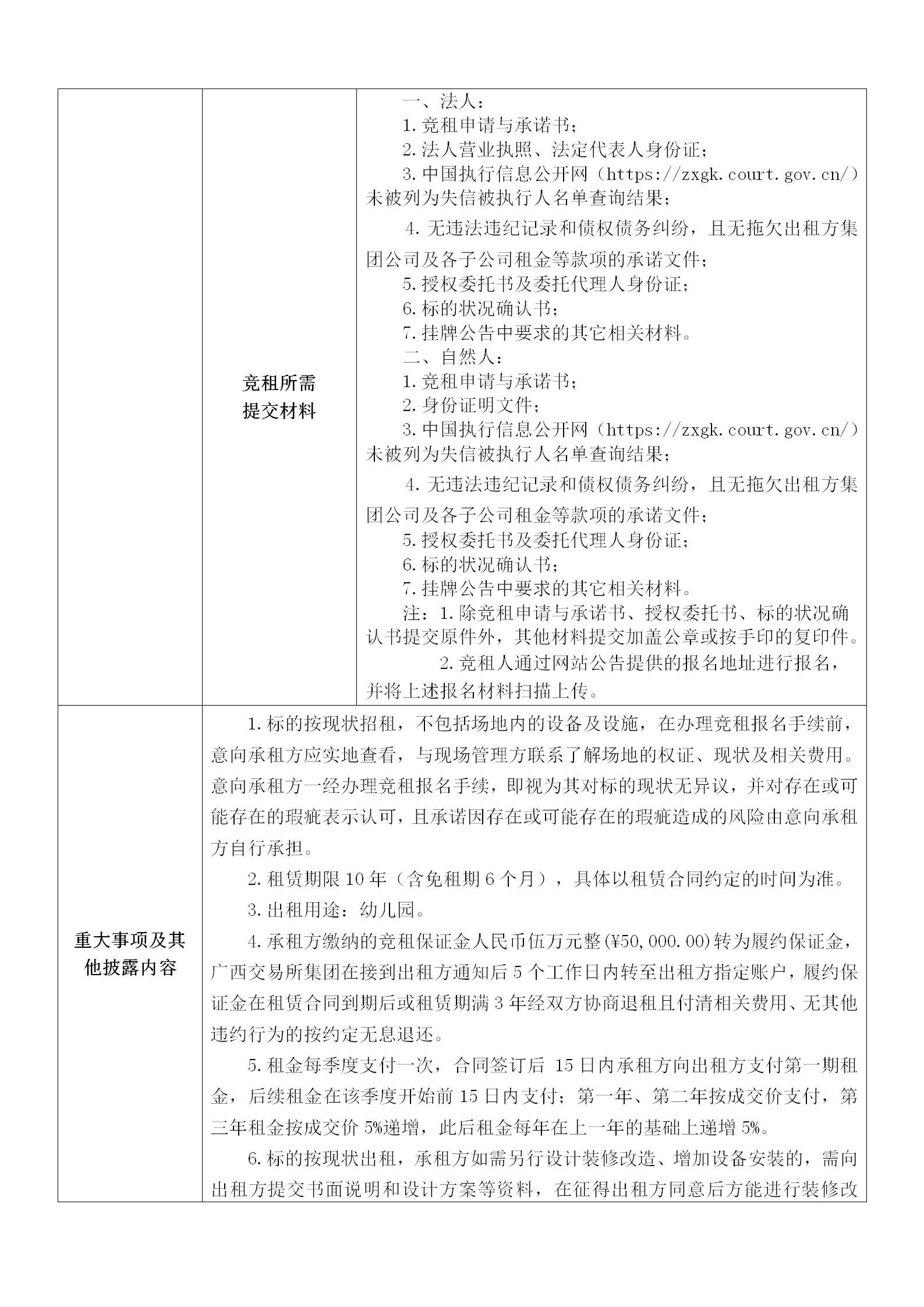 欽州市安惠一園幼兒園資產(chǎn)出租項(xiàng)目公告內(nèi)容(公共資源)