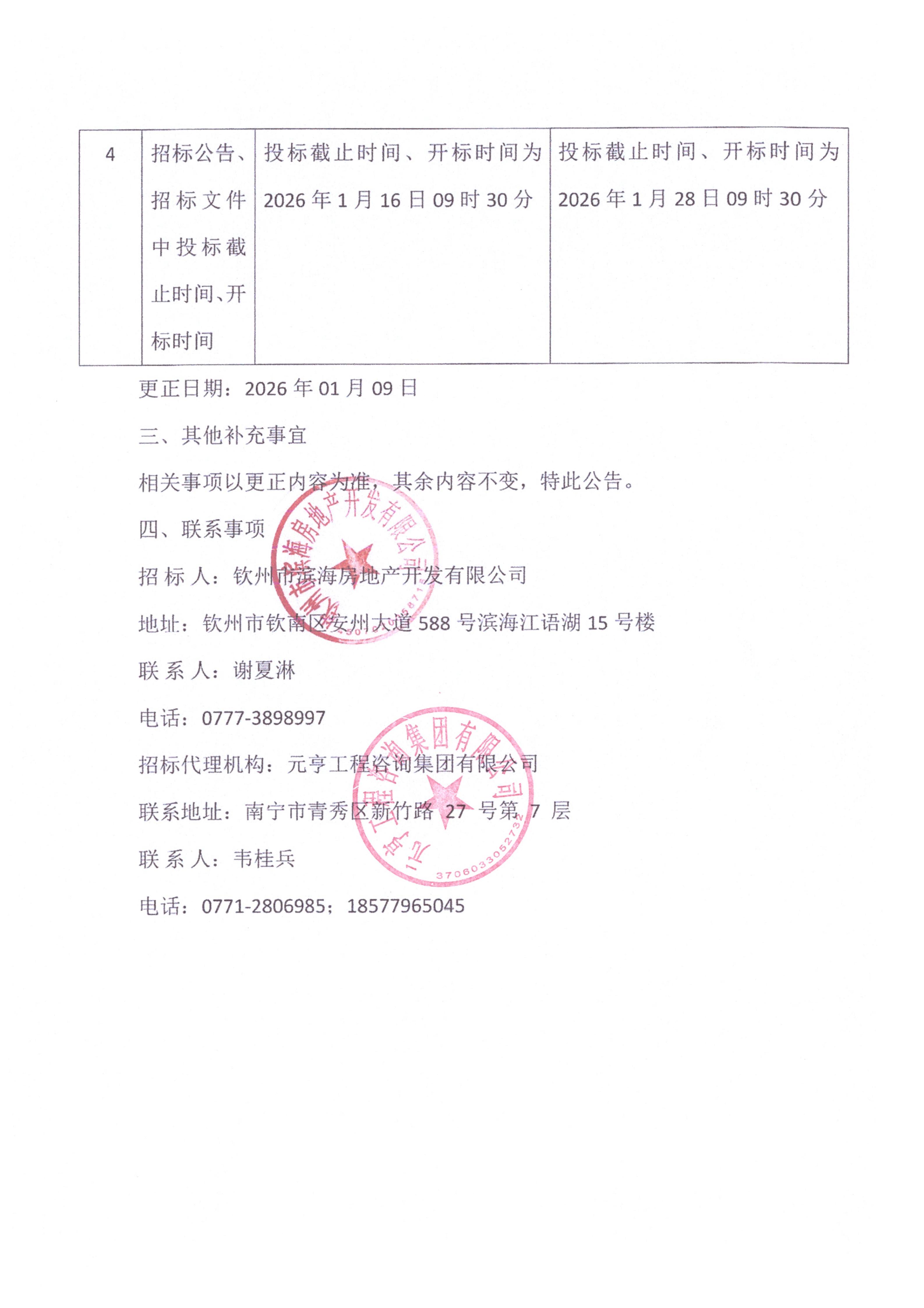 欽州北部灣大學(xué)大門商業(yè)街地塊項日監(jiān)理更正公告(一)
